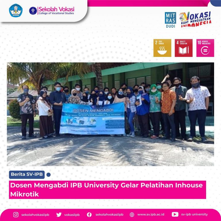 Sebagai upaya untuk meningkatkan mutu lulusan Sekolah Menengah Kejuruan (SMK), Bayu Widodo, ST, MT, Dosen IPB University dari Program Studi Manajemen Informatika, Sekolah Vokasi berikan pelatihan Inhouse Mikrotik. Kegiatan ini merupakan bagian dari program Dosen Mengabdi, Lembaga Penelitian dan Pengabdian kepada Masyarakat (LPPM) yang dilaksanakan belum lama ini.